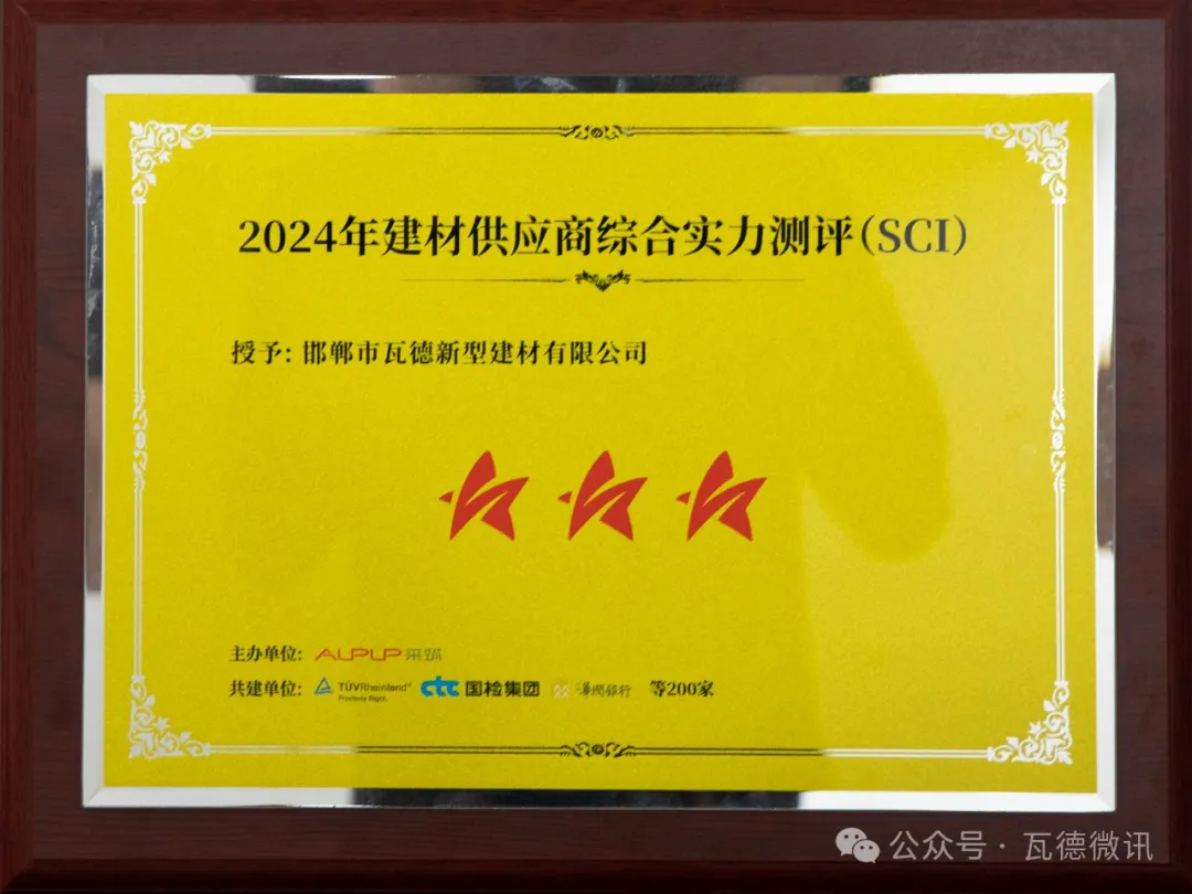 瓦德新材在本次SCI綜合測評中獲評“三星供應商”。本次SCI測評共有2600余家參評單位,其中僅197家供應商獲得“三星供應商”稱號,占比率僅為7.5%。